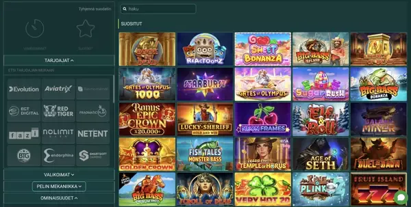 | Keskeiset ohjelmistokumppanit | Pragmatic Play, NetEnt, Play'n GO, Evolution Gaming, Relax Gaming, Hacksaw Gaming |